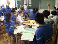 今日の授業です。3年生の授業では、卒業アルバム用の授業風景撮影がありました。