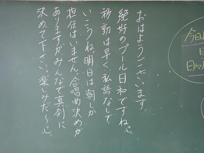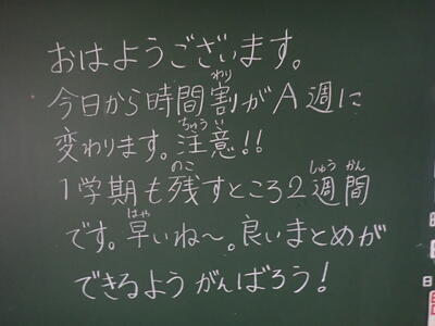 今日から1学期最後の月、7月です。朝からずっと雨が降っていました。気温も低かったですね。体調崩さないようにしてください。
