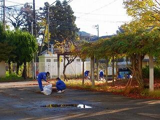 霧が晴れて、木々の色づきと青空が爽やかな朝を迎えました。そして、学校に着くと朝練習で登校していた女子ソフトテニス部と先生方が、校舎周りの落ち葉掃きをしてくれていました。一層爽やかな気分になり、今日も素敵な葛飾中学校の一日が始まります。