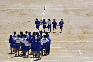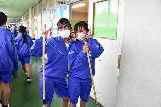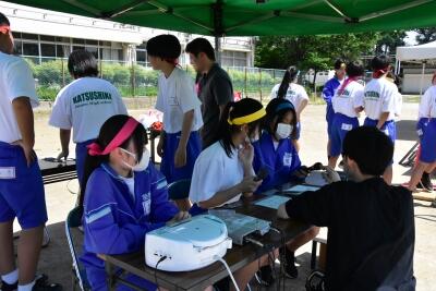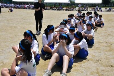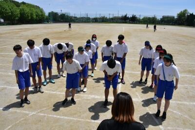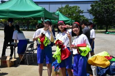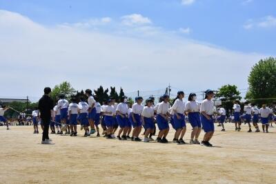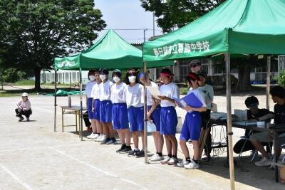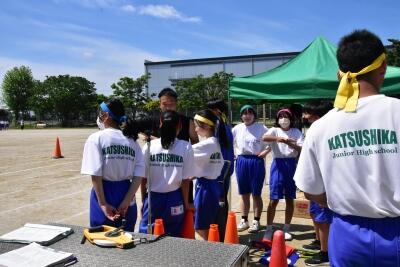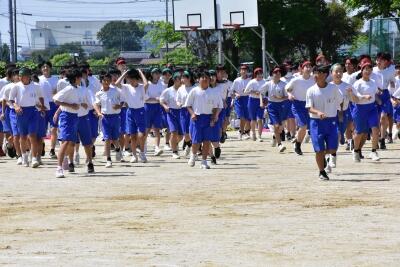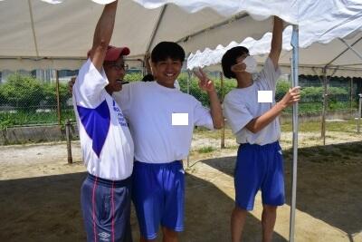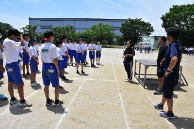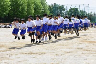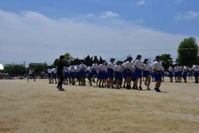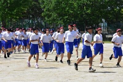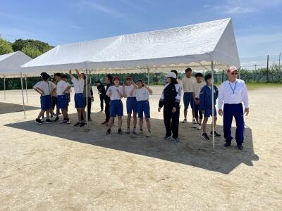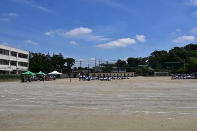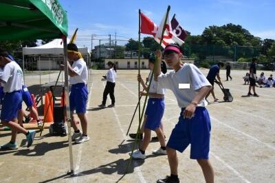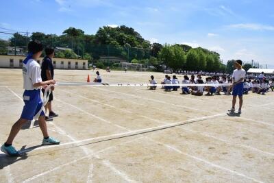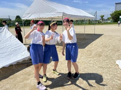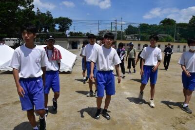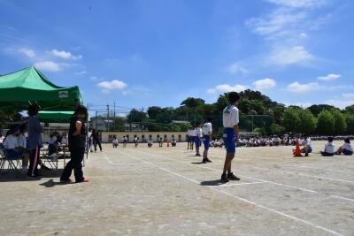 体育祭の予行が行われました。日差しが強く、大変暑くなりましたが、湿度が高くならなかったことは幸いでした。予行の間は、体育科の先生の指示で、予行を中断しての全体給水・休憩の時間がたびたび設けられたり、帽子の着用が促されるなど、熱中症対策を行ったため、体調不良の生徒もなく、無事に予行を終わることができました。予行そのものは、元気な声に明るい表情の「葛中魂」あふれるすばらしい出来栄えでした。保護者・地域の皆様、土曜日の本番を楽しみになさっていてくださいませ。