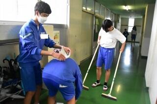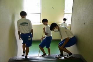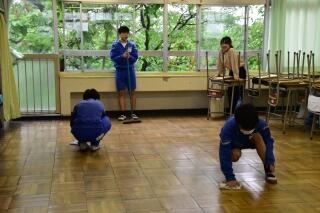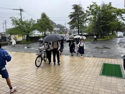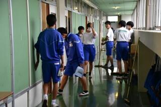 大雨の月曜日となりました。いよいよ今週は体育祭です。明日からはまた、暑くなるようです。教職員は職員会議終了後に、「熱中症予防研修会」を行いました。先生方も恐ろしい熱中症から生徒を守るべく対策をしていますが、保護者の皆様方、生徒の皆さんも十分な量の水分(スポーツ飲料など)を用意し、こまめに水分補給を行ってください。ご協力をお願いいたします。