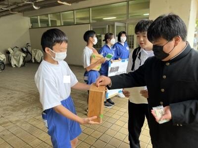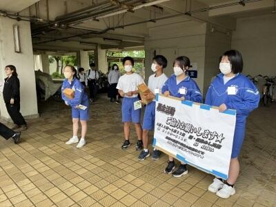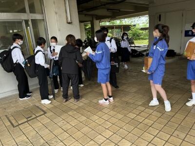 生徒会本部役員のみなさんが、朝の挨拶運動と「緑の羽根募金」が行われています。みなさんに協力いただいた募金は、「緑の募金」を通して、身近な地域や国内外の森づくりにつながり、さまざまな「森づくり・人づくり」活動の活性化に活かされるそうです。