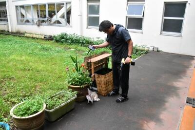 学校歯科医の先生にお越しいただき、歯科検診が行われました。3年生の検診の様子を見に行きましたが、整然と、静粛に待機している様子はさすが葛飾中学校の3年生です。学校の敷地にはたくさんの樹木や植物がありますが、栽培しているジャガイモ、ヒマワリ、アジサイ、ドクダミ、立葵、ツツジなどが花を咲かせ学校を彩ってくれています。生徒会本部役員のみなさんが、定例の朝の挨拶運動を行ってくれました。どうもありがとうございました。