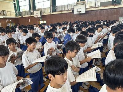 10月第2週が始まりました。今日は6時間目に、今年度から葛飾中学校の合唱祭のプログラムに加わった「全校合唱」の第1回目の全体練習が行われました。1回目にしてはまずまずといったところでしょうか・・・合唱祭実行委員や指揮者・伴奏者など多くの方々の活躍、ありがとうございました。