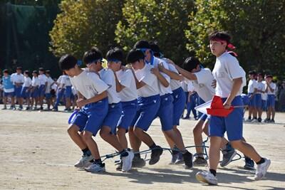 秋晴れの空の下、葛飾中学校第79回体育祭を無事開催することができました。生徒たちは日頃の練習の成果を最大限に発揮し、仲間と協力しながら競技に臨む「葛中魂」あふれる姿がとても印象的でした。
