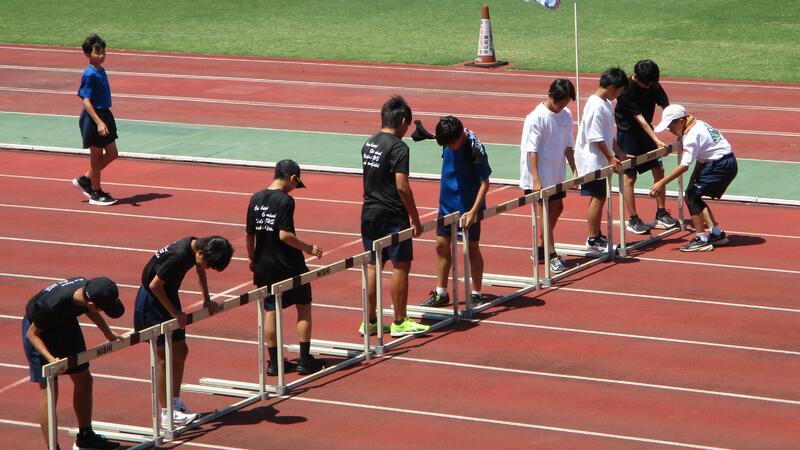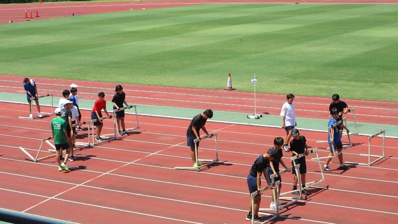 昨日と本日、真夏日の中、学校総合体育大会地区予選会陸上競技が野田市総合公園陸上競技場で開催されました。