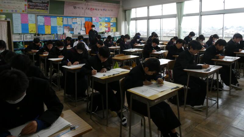 本日25日(火)、2学期期末テスト1日目を迎えました。3連休でしっかり準備ができている生徒たちには、当日の朝も余念がありません。恒例の勉強しながらの登校の様子もたくさん見られました。