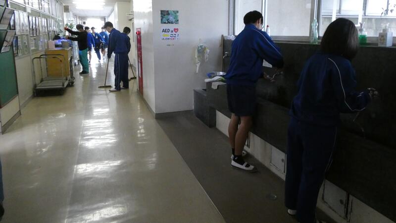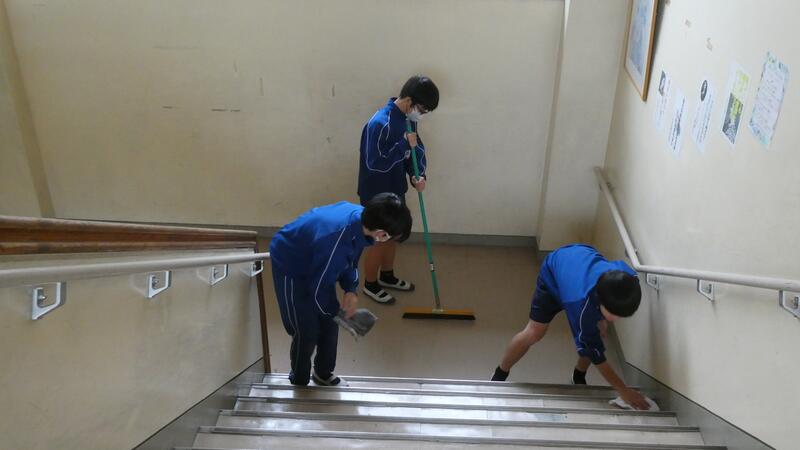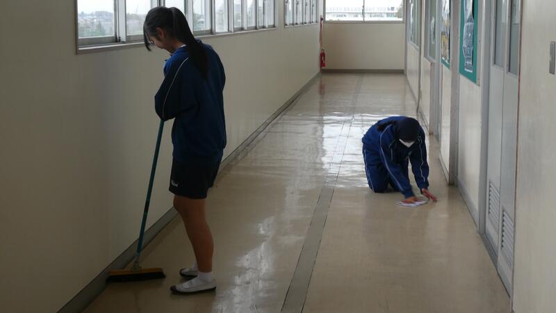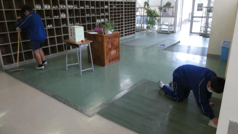 本日午後、キャリア教育についての2年間の研究の成果を他校の先生方にもお伝えする研究発表会が開催されました。研究授業も行われ、生徒も教員も全力で取り組むうれしい姿をたくさん見ることができました。まずは、準備(清掃)の様子をお伝えいたします。