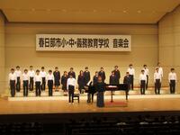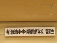 先週、11月6日(木)に市内音楽会が正和工業にじいろホール(春日部市民文化会館)にて行われました。各校の代表児童・生徒が一堂に会し、器楽合奏や歌唱を繰り広げました。さすが学校の代表ともなると、どの学校も感心するほど上手でした。もちろん本校代表の3年2組の生徒たちも緊張しつつも精一杯のパフォーマンスをして、会場から大きな拍手をいただきました。