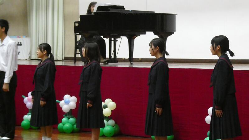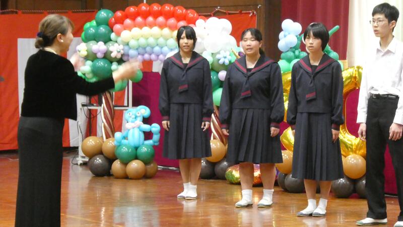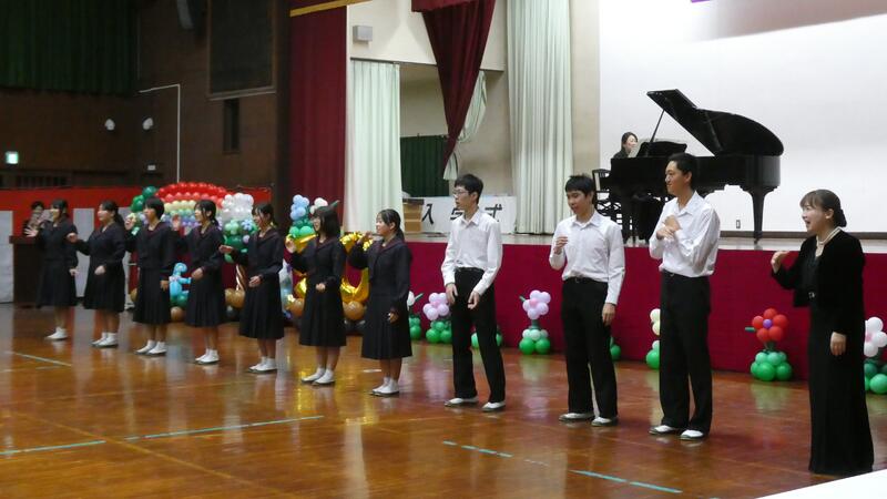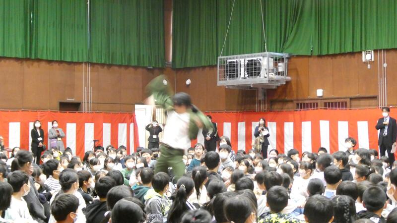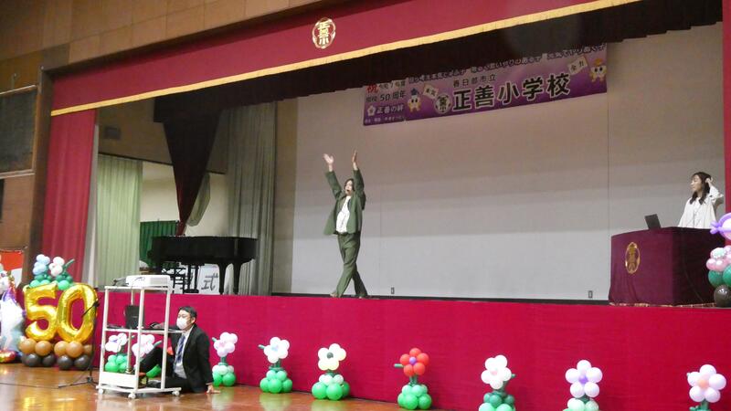 正善小の卒業生であるプロのダンサーによるパフォーマンスの後に、一緒に「おかえりかすかべ音頭」を踊りました。とても楽しかったです。そしてその後、本校有志合唱団が合唱「翼をください」を披露しました。