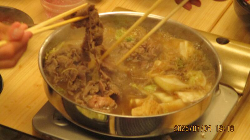 2日目の夕食はすき焼きで、昨日以上に盛り上がりました。