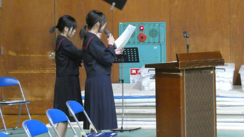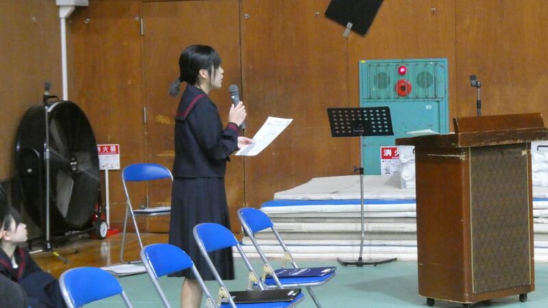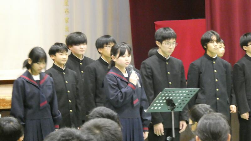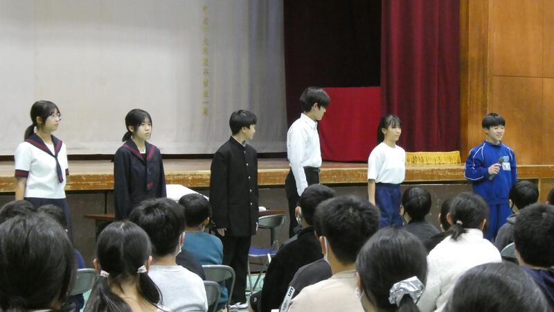2学年生徒代表による作文発表「緑中学校の生活と学習」