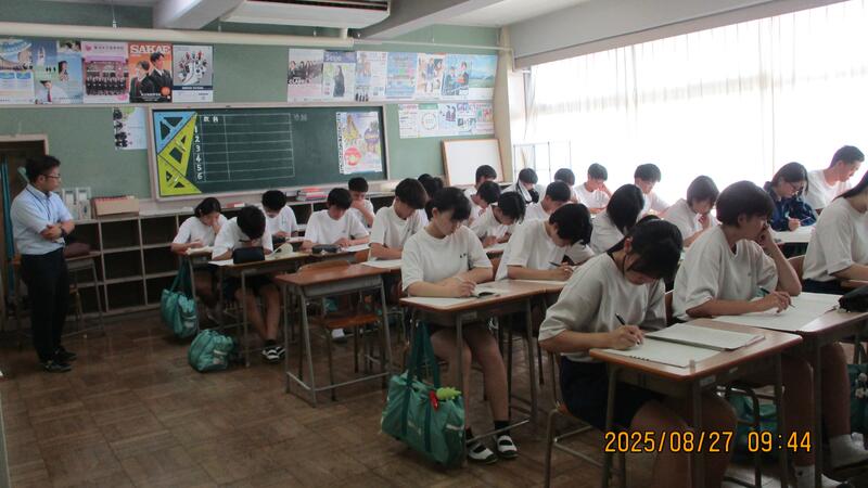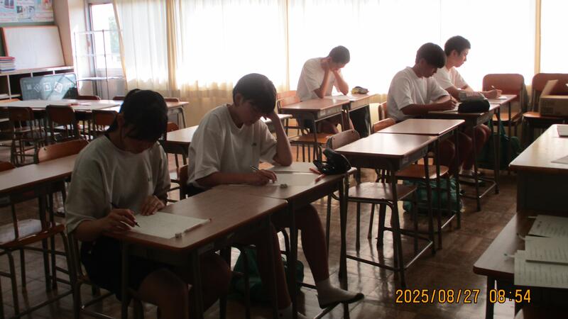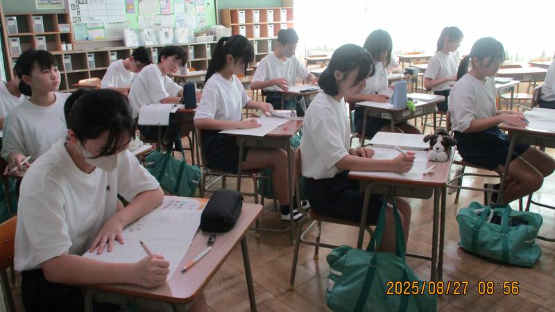 本日と明日の2日間、午前中3時間ずつ3年生対象の夏季学習会が行われます。両日とも50名弱の3年生が参加します。3年生一人一人の進路実現に向けての努力の積み重ねが学校内外で本格的に始まっています。