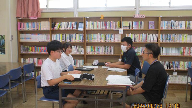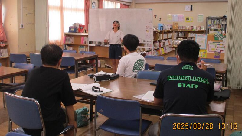 本日午後、9月5日(金)に行われる市内英語弁論大会に出場する生徒2名がALTの指導を受けました。これまでも数回行い、本番に向けて準備を重ねています。