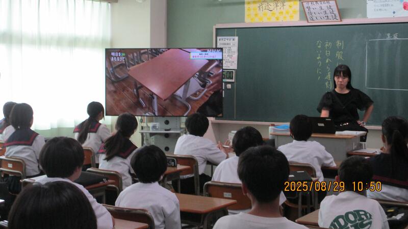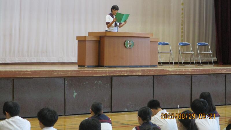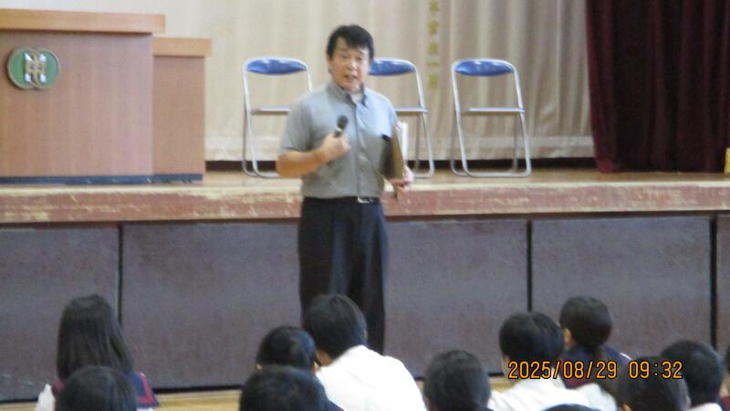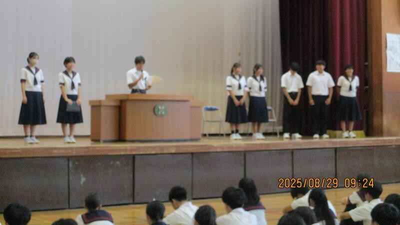 閉式後、表彰や関東大会等の報告や新しい職員の紹介、2学期の生活についての話がありました。