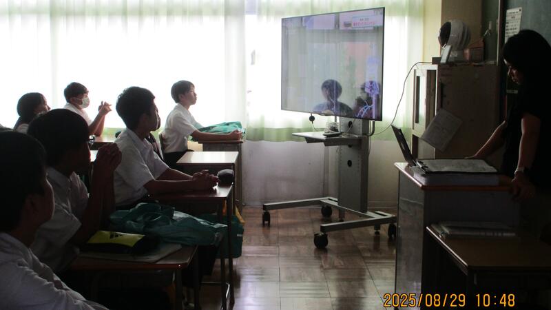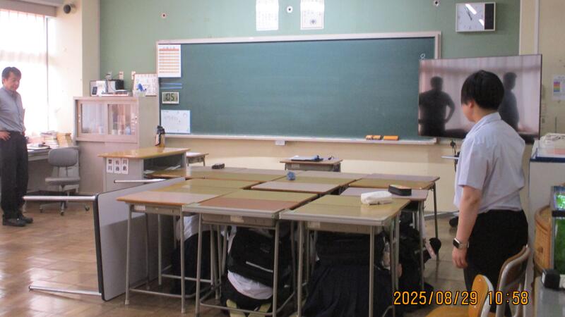 まずはじめに各教室で映像を見ながら①竜巻発生時の基本動作 ②シェルターの作り方 を学習しました。
