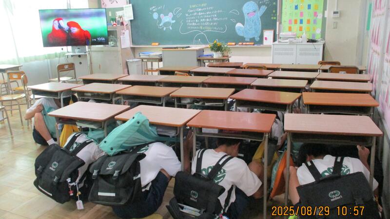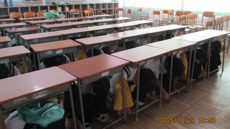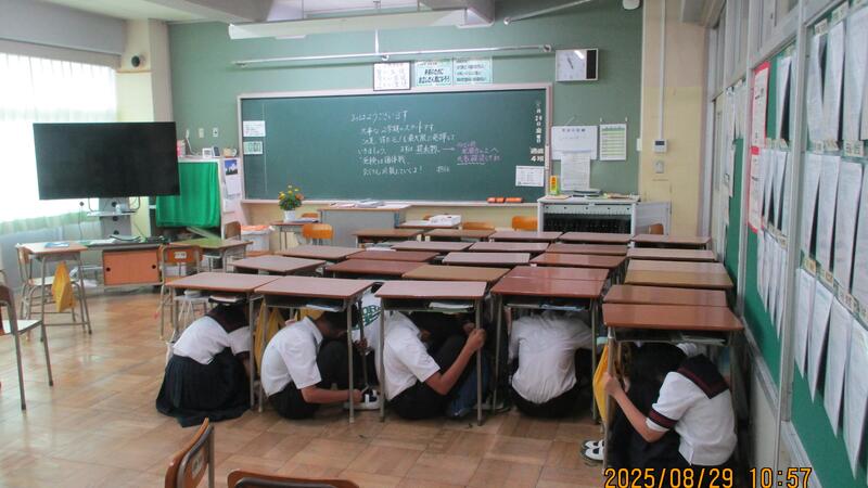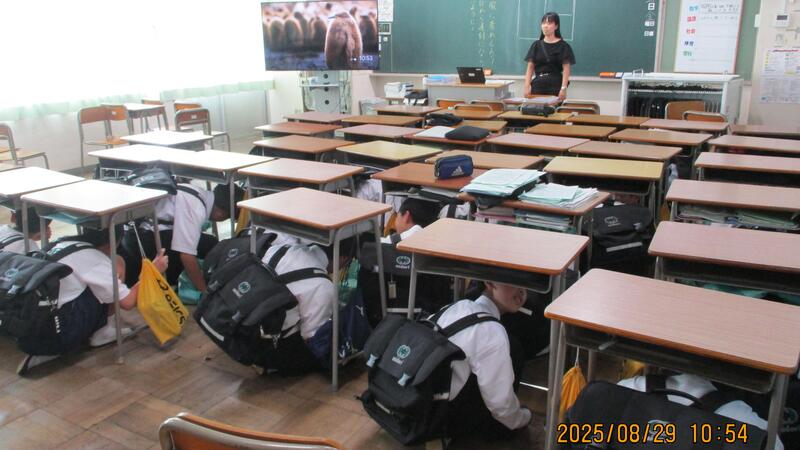 本日3校時、竜巻発生を想定した避難訓練を行いました。過去の経験を忘れず、常に危機意識をもって万が一に備えることができたと思います。