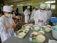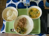 2学期最初の給食は、人気メニューのビビンバです。配膳している間もおいしそうなにおいが教室に漂います。お肉も野菜もたっぷり。給食室の皆さんが、残暑厳しい中、緑中生のために作ってくださいました。感謝して、元気にいただきましょう。