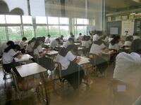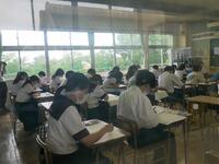 3年生は東部地区学力検査を受けています。進路を考える上で大切な資料となる学力検査。国語、数学、社会、理科、英語の5教科に取り組んでいます。最後まで集中してテストに臨みましょう。がんばれ!