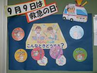 保健室前廊下の掲示物を紹介します。今日は救急の日。気をつけていても、授業中や部活動、休み時間などにけがをすることがあります。そんなとき、初期対応の方法を知っていれば、慌てず適切に対応することができますよ。