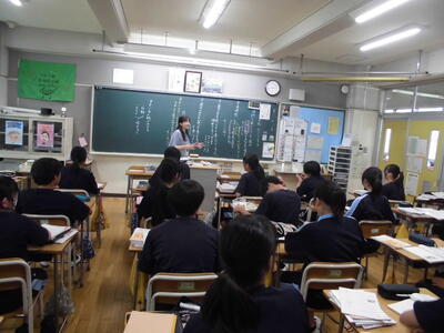 本日、1年2組で研究授業(道徳)が行われました。内容は、場に応じた挨拶についてでした。皆さん、先生からの発問に対してしっかりと向き合い、自分の意見をプリントにまとめることができていました。授業終了後、お招きした指導者の先生からご指導をいただきました。先生方も、皆さんと一緒に日々学んでいます。