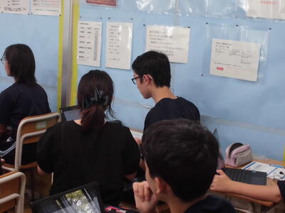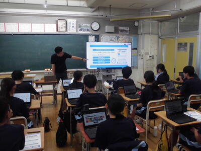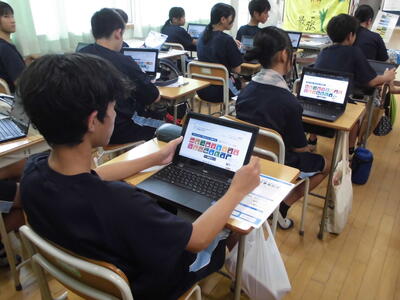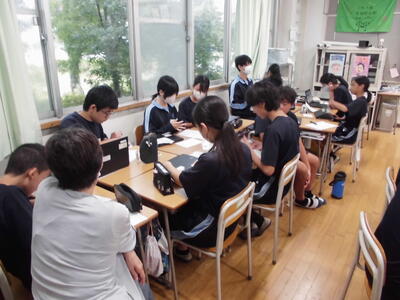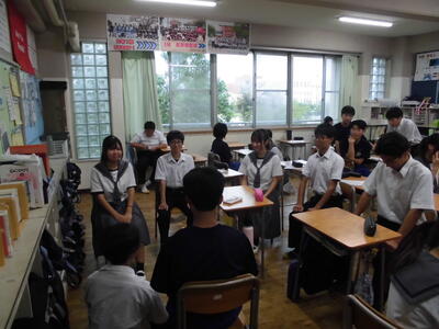 2年生は、高校調べの発表会を行っていました。