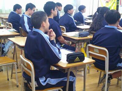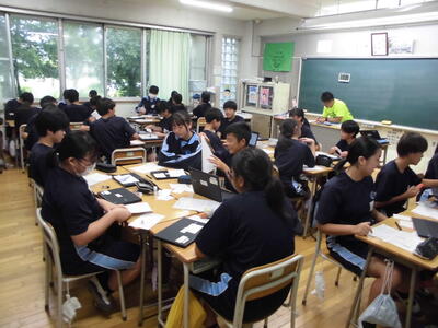 本日、1年生の保護者の皆様にご来校いただき、冬の学校に関する説明会を実施しました。実行委員を中心に生徒たちが主体的に考えた服装や持ち物・ルールの他、緊急時の対応や保健関係などについて説明させていただきました。ご多用の中、多くの保護者の皆様にご出席いただきました。ありがとうございました。2年生は、12月の中旬に予定されている校外学習(エコプロ)に向けて、バスの座席決めを行った後、班ごとに調べ学習に取り組んでいました。当日に充実した活動ができるように、よりよい準備をしていきましょう。明日から、3連休となります。1・2年生は、来週に期末テストを控えています。よい結果が得られるように、しっかりと学習に励んでくださいね。
