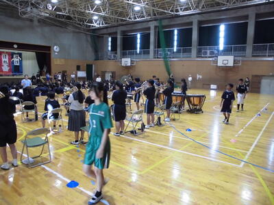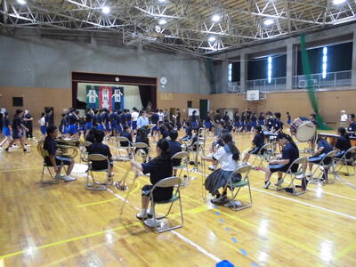 吹奏楽部の演奏で各部の部長が入場し、壮行会が始まりました。