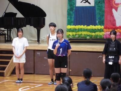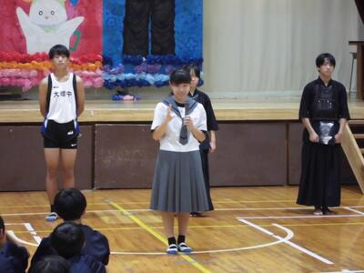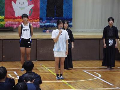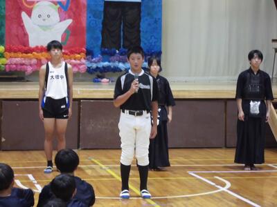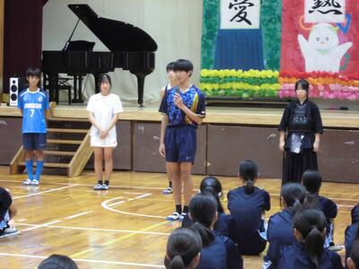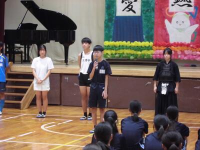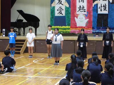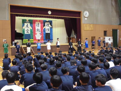 各学年の代表生徒が、2学期に向けた抱負などを発表しました。