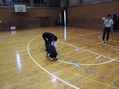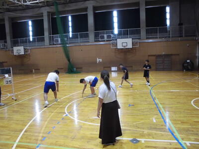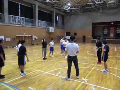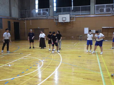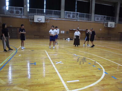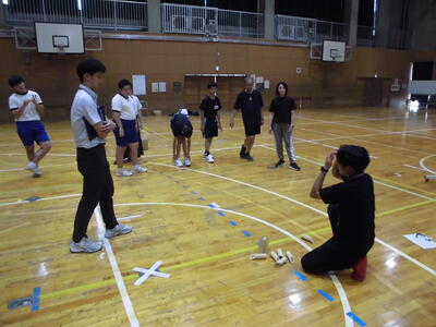 今日は、市内中学校の体育の先生をお招きして、研究授業を行いました。