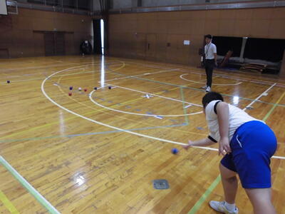 「モルック」の様子です。ルールを理解して、ゲームに臨んでいました。