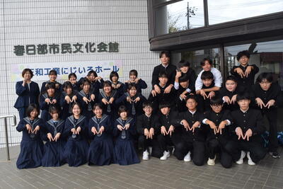 本日、市内音楽会とハンドボール県大会2日目が行われました。市内音楽会には、合唱祭の「3年生の部」で優秀賞に輝いた1組が参加しました。合唱祭を終えてからも、この日に向けて毎日練習を重ねてきました。その成果として、素敵な「信じる」をホールいっぱいに響かせることができました。ハンドボール県大会2日目には、昨日の試合で勝利した女子チームが出場しました。強豪のチームを相手に、序盤点数を重ねることができました。惜しくも敗退となってしまいましたが、この経験が来年の学校総合体育大会に活かされることと思います。また、明日から頑張りましょう。3年1組の皆さん、女子ハンドボール部の皆さん、お疲れ様でした。(市内音楽会の写真は、ホール内撮影禁止の為ありません。最後に撮った集合写真を掲載します。)
