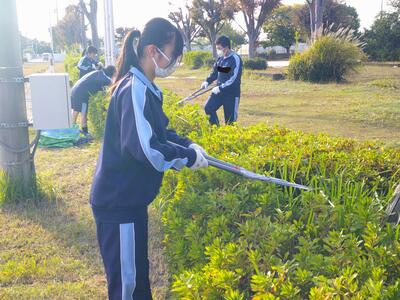 環境美化活動では、地域の方や保護者の方も協力して、草取りを中心に進めました。