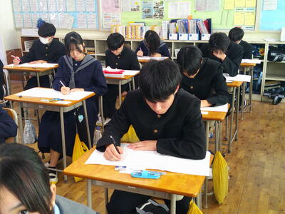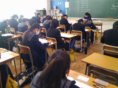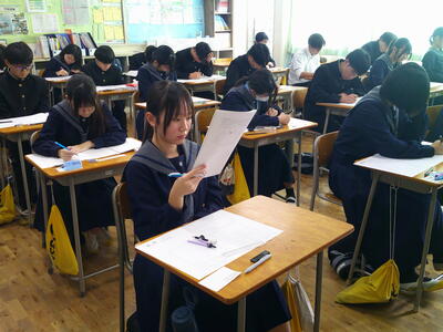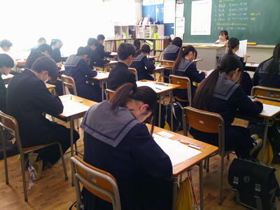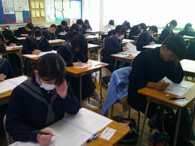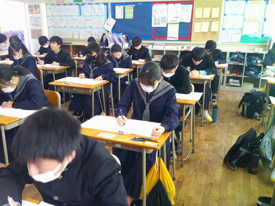 集中した雰囲気の中、テストに取り組んでいました。
