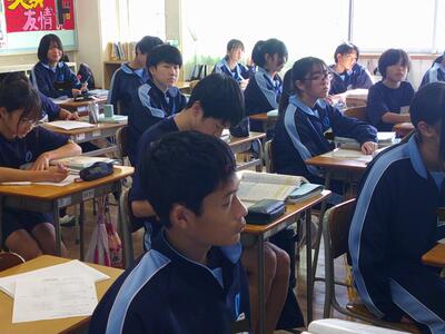 本日から3日間、1年生が職場体験で各事業所で出かけています。(後ほどブログで様子をお知らせします。)いつもは賑やかな1年生の教室も静まっており、寂しい気持ちです。2年生と3年生は、道徳の授業にお邪魔しました。真剣に先生の話を聞いたり、活発に意見を述べている様子が見られました。以下に、その様子をご紹介します。