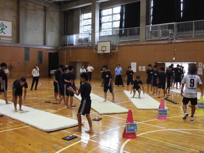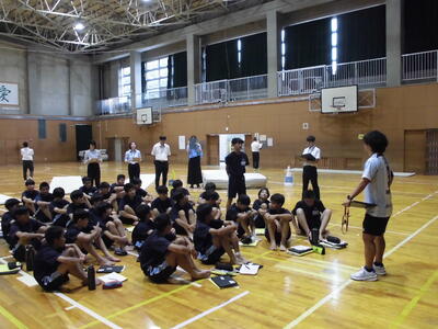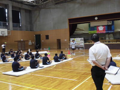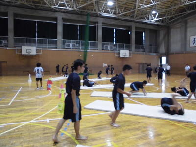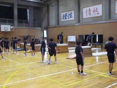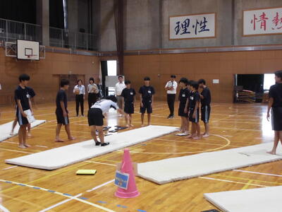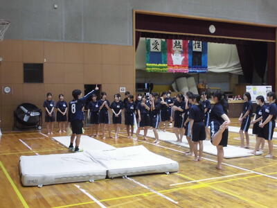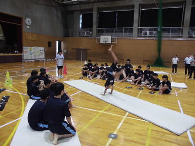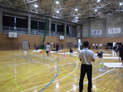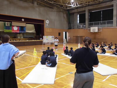 今日は、市内中学校の体育の先生をお招きして、研究授業を行いました。