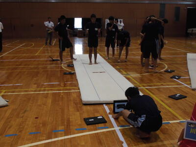 生徒はタブレット活用し、話し合いを重ねながら技を磨いている様子でした。