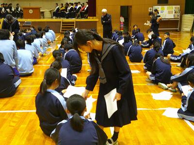 本日、生徒会本部役員及び後期学級委員の任命式が行われました。呼名をされた時の返事、全員がとても立派なものでした。生徒会本部役員の皆さん、後期学級の皆さん、これからよろしくお願いします。また、退任した旧生徒会本部役員の皆さん、お疲れ様でした。