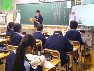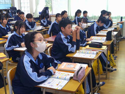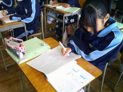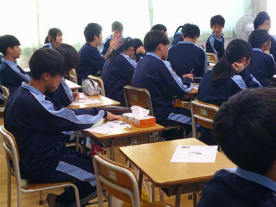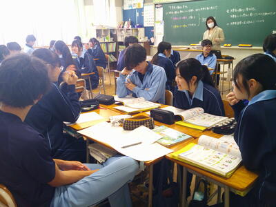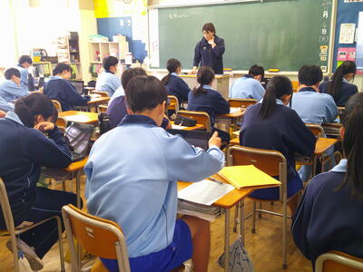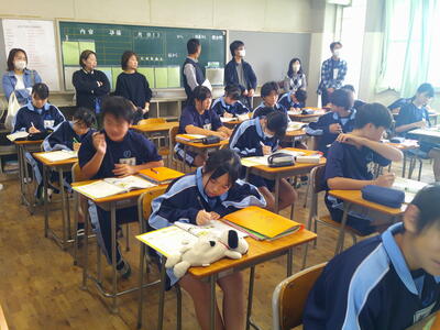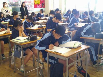 本日から3日間、1年生が職場体験で各事業所で出かけています。(後ほどブログで様子をお知らせします。)いつもは賑やかな1年生の教室も静まっており、寂しい気持ちです。2年生と3年生は、道徳の授業にお邪魔しました。真剣に先生の話を聞いたり、活発に意見を述べている様子が見られました。以下に、その様子をご紹介します。