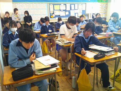 本日も1年生が職場体験で各事業所にお世話なりました。2日目ということもあり、少しずつ慣れ、働くことについて多くの学びを得ている頃ではないかと思います。1年生の皆さん、明日の最終日も頑張ってください。事業所の皆様、最終日もよろしくお願いします。