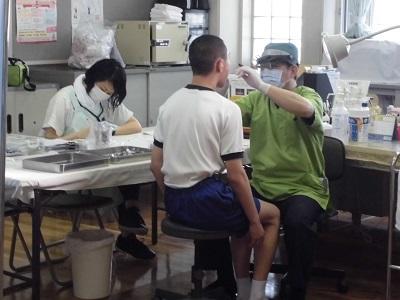 午前9時から保健室において、2年生の1学級と1年生全学級の歯科検診を実施しました。