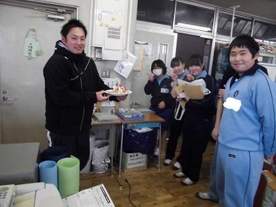 3年生がパティシィエになりました 投稿日時 : 2018/02/23 大増中 カテゴリ: 3年生にとって、今日が中学校生活最後の家庭科の授業です。「調理実習」として、“パンケーキ”をつくりました。どの班も、様々な工夫をしてすてきな、おいしそうなケーキをつくりました。みんな、すっかりパティシィエ(ケーキ職人)になっていました。 作ったケーキを教員にプレゼントしてくれました。「とてもおいしかったです。3年生の皆さん、ありがとうございました。」 {{options.likeCount}} {{options.likeCount}}