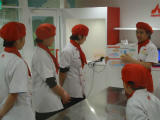 調理室前の廊下に、おいしそうなにおいがしてきました。中では、3年生の家庭科の調理実習が行われていました。3年生は、とても楽しそうに「クレープ」をつくっていました。