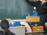 1年生の数学の授業を訪問しました。直方体、立方体、円柱、円錐、円柱など、様々な立体の授業でした。模型を使いながら授業を展開していました。なかなか空間図形は難しいようですが、教員の教える側も、教わる生徒も頑張っていました。