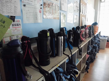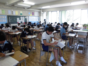 登校後の「整然とした下駄箱」、熱中症予防策の一つとして持参している「各教室に整理されて置かれている水筒」、自らのよりよい進路実現に活かすための「埼葛学力テストへの挑戦」の様子をご覧ください。
