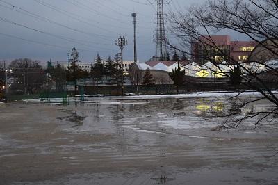 それでも、今日の一日でかなり解け、地面が見えてきました。でも校庭で運動するまでには、もう少しかかりそうです。