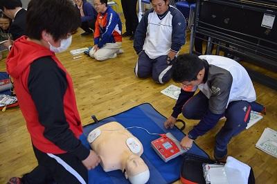 | 〔トレーナー用のAEDを使用しての実技演習〕 |