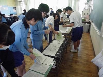〔説明内容の最終確認と進行準備をする実行委員〕 (画面手前生徒) |