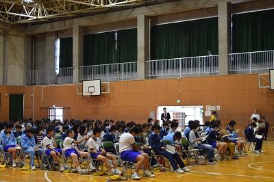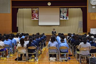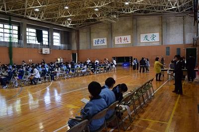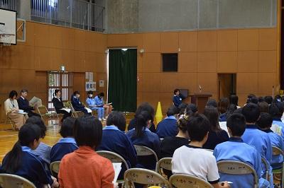 授業参観後の第6校時は体育館で、生徒同席の保護者会を開催しました。