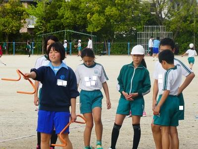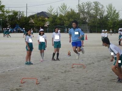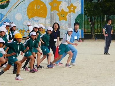今日の放課後、本校陸上競技部の生徒が立野小学校に出向いて、小学生に “ 走り方 ”、” 跳び方 ” 、" 心構え " などについてアドバイスしたり、手本を示したりする交流活動を行いました。